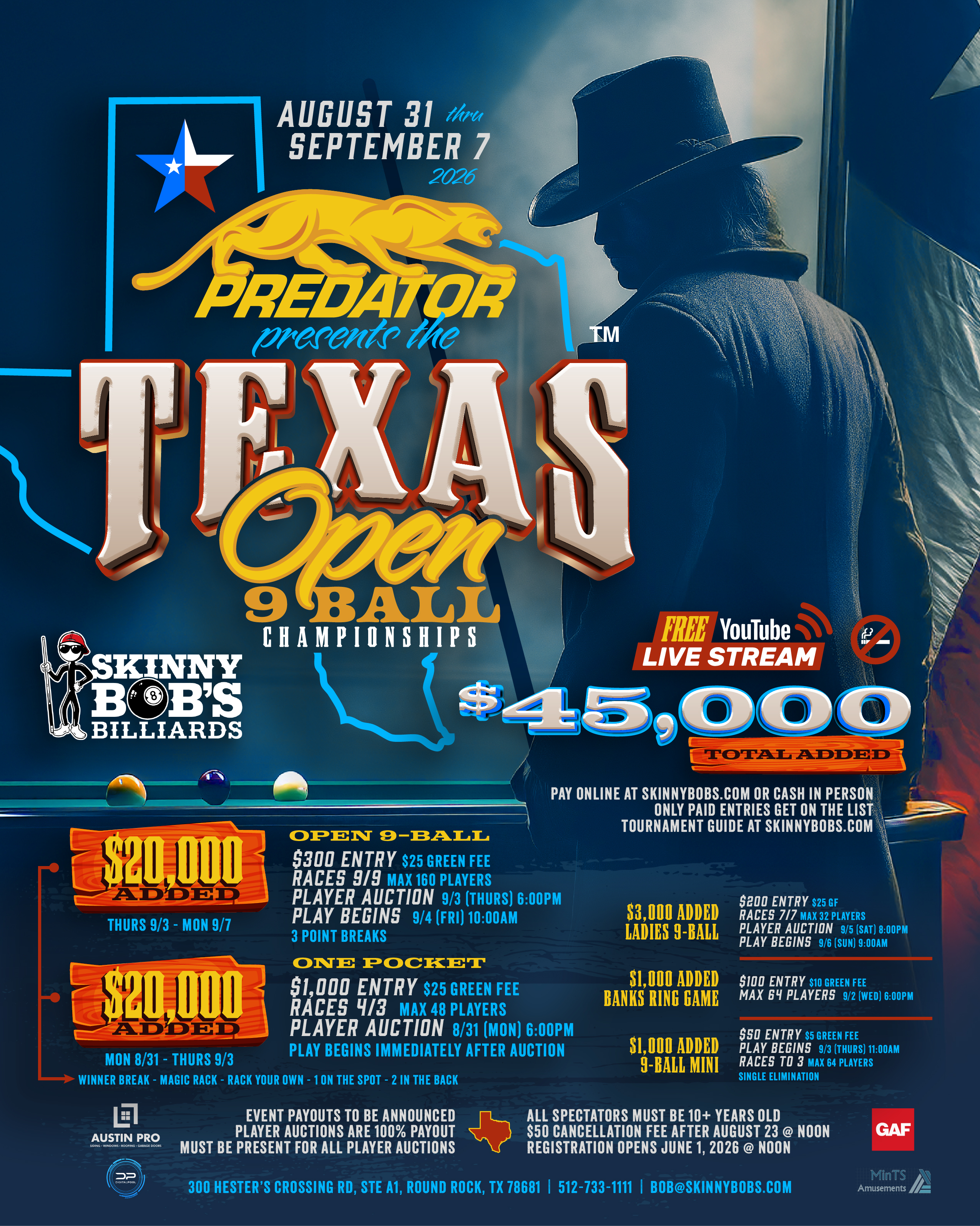 HOME OF THE TEXAS OPEN 9 BALL CHAMPIONSHIPS™